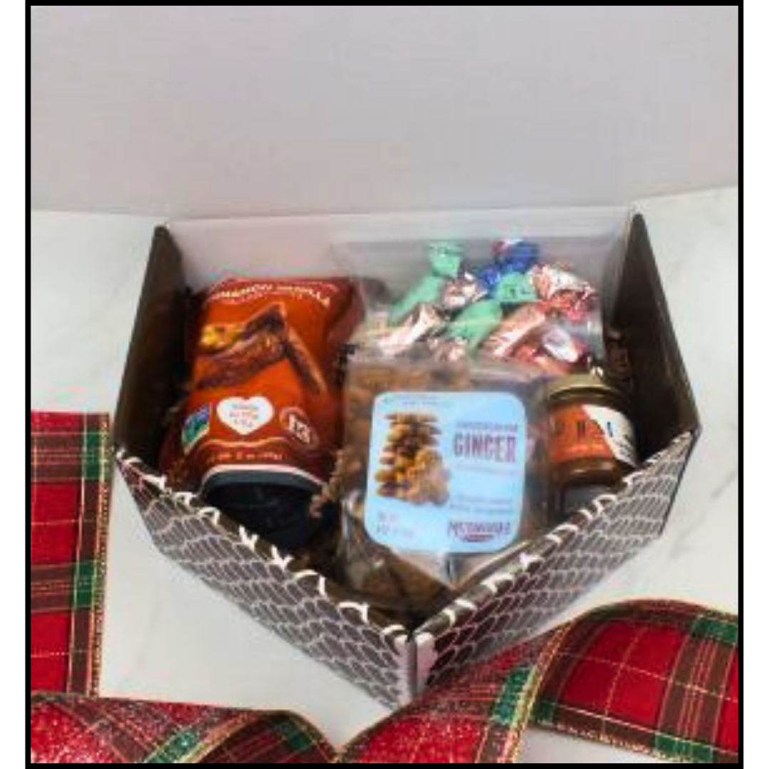 Designed in a gingerbread gift box with a handmade bow.