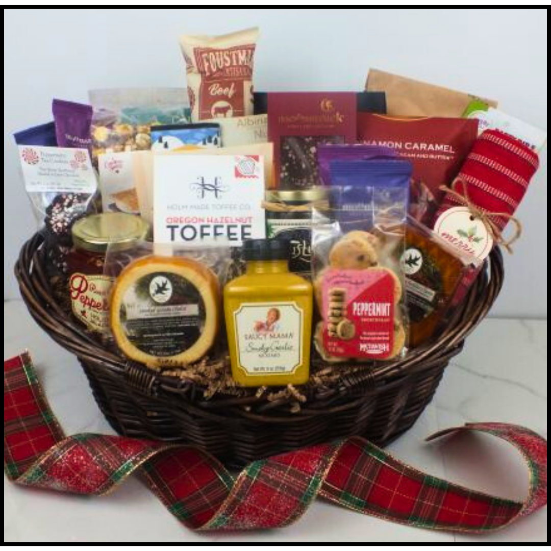 Treat your whole family, friends, clients or staff to a sampling of cheeses, salami, Smoked Salmon a variety of Oregon snacks.