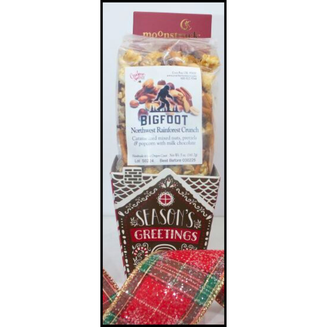 Designed in a fun holiday container and wrapped in Cellophane with handmade bow.